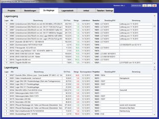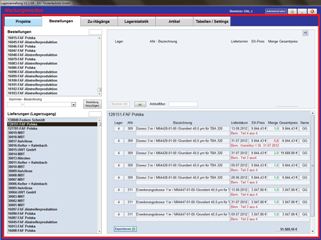 Projekte (Lagerabgang) / Bestellungen (Lagerzugang)